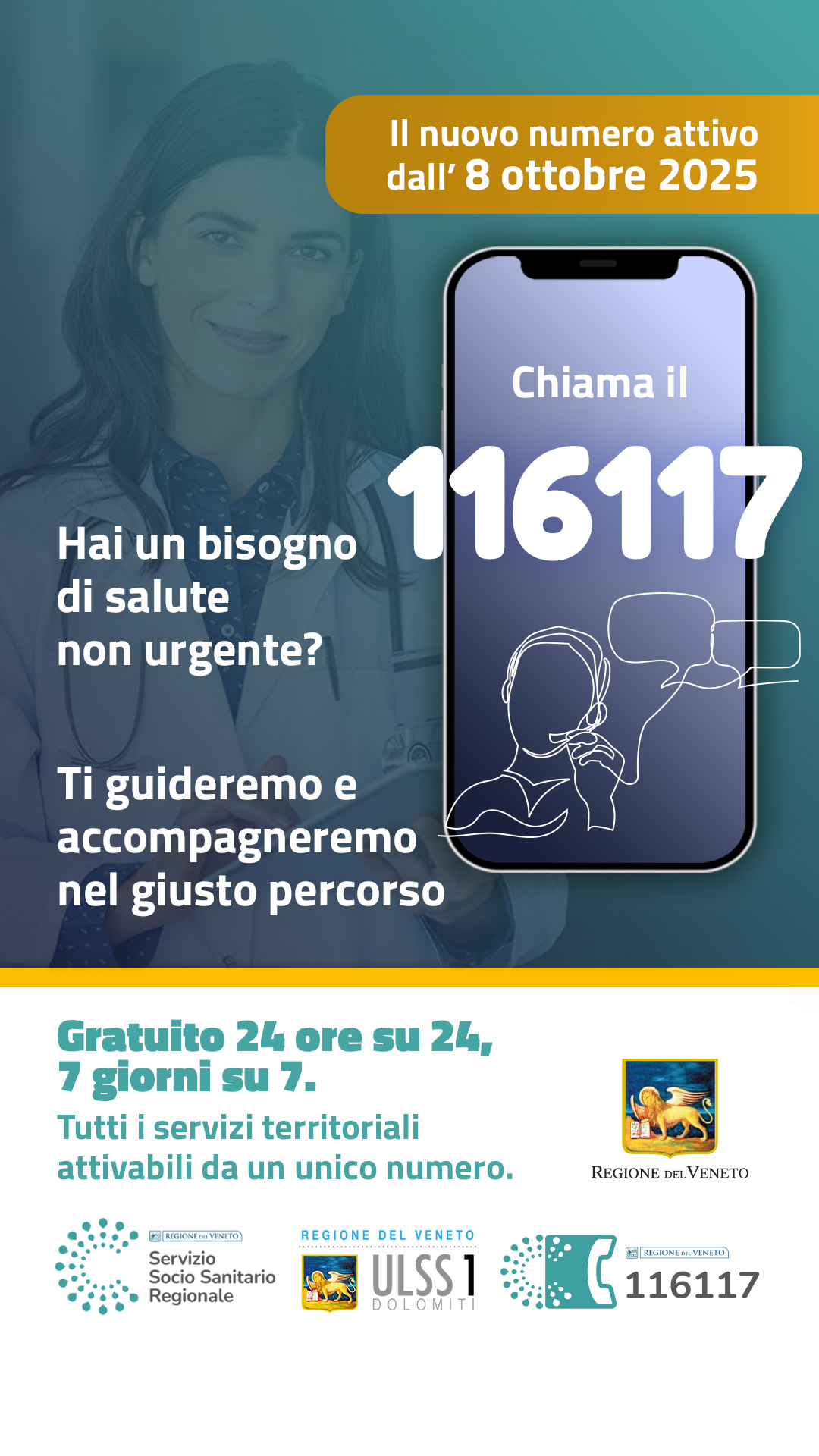 Chiama il 116117 - nuovo numero unico della Continuità Assistenziale (ex Guardia Medica) attivo dall'8 ottobre 2025